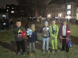 Sogar St. Martin, in diesem Jahr eher „St. Martina“, kam mit Rüstung und Pferd und begleitete den Umzug rund um die Paulschule herum. Die Kinder trugen stolz ihre Laternen, die sie in den Wochen zuvor mit ihren Lehrerinnen gebastelt hatten und sangen zu den Klängen des Posaunenchors Martinslieder. Nach dem Umzug konnte man sich mit frisch gegrillter Bratwurst im Brötchen oder einem Martinsbrezel stärken. Am extra bestellten Getränkewagen wurden sowohl Kinderpunsch und Wasser, als auch Glühwein ausgeschenkt.