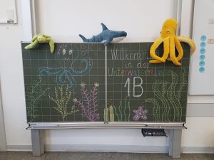 Am 28.08.2025 fand unsere Einschulung statt. Wir starteten um 9.30 Uhr in der Gnadenkirche, wo Pfarrer Naumann uns gemeinsam mit den Kindern der vierten Klassen durch den Gottesdienst führte. Beim Singen wurden wir musikalisch kräftig unterstützt von Frau Hilgert, Frau Jochheim-Veen und Diakon Nawrocik. Anschließend gingen wir zur Paulschule, wo wir uns auf dem Schulhof zu einer kleinen Feier trafen. Die Klassen 2a und 2b tanzten für uns zum Chartstürmer „ATP“ und sangen für uns das Lied „Gemeinsam sind wir stark“. Danach gingen wir gemeinsam mit Frau Lindenau und Frau Bogoslaw durch ein Spalier in unseren Klasseraum und hatten unsere erste Schulstunde als Schulkinder, während unsere Eltern, Familie und Freunde sich bei Kaffee und Kuchen (gespendet durch unseren Förderverein) unterhalten und den Lehrkräften sowie Frau Düx Fragen stellen konnten. Die Stunde verging wie im Fluge, und nach einem Foto vor der geschmückten Wand ging die Einschulungsfeier dann in privatem Rahmen weiter. Wir freuen uns auf die kommenden vier Jahre mit unseren Lehrerinnen und unseren Klassentieren Merle Meereschildkröte, Haiko Hai und Oktay Oktopus!