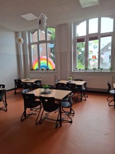 In den Räumen der OGS wird nach der Schule gemeinsam zu Mittag gegessen, gespielt, gelernt und gelacht. Außerdem finden am Nachmittag einige AGs statt, wie zum Beispiel die Fußball- oder die Flöten-AG. Informationen zu den AGs finden Sie unter dem entsprechenden Reiter.
